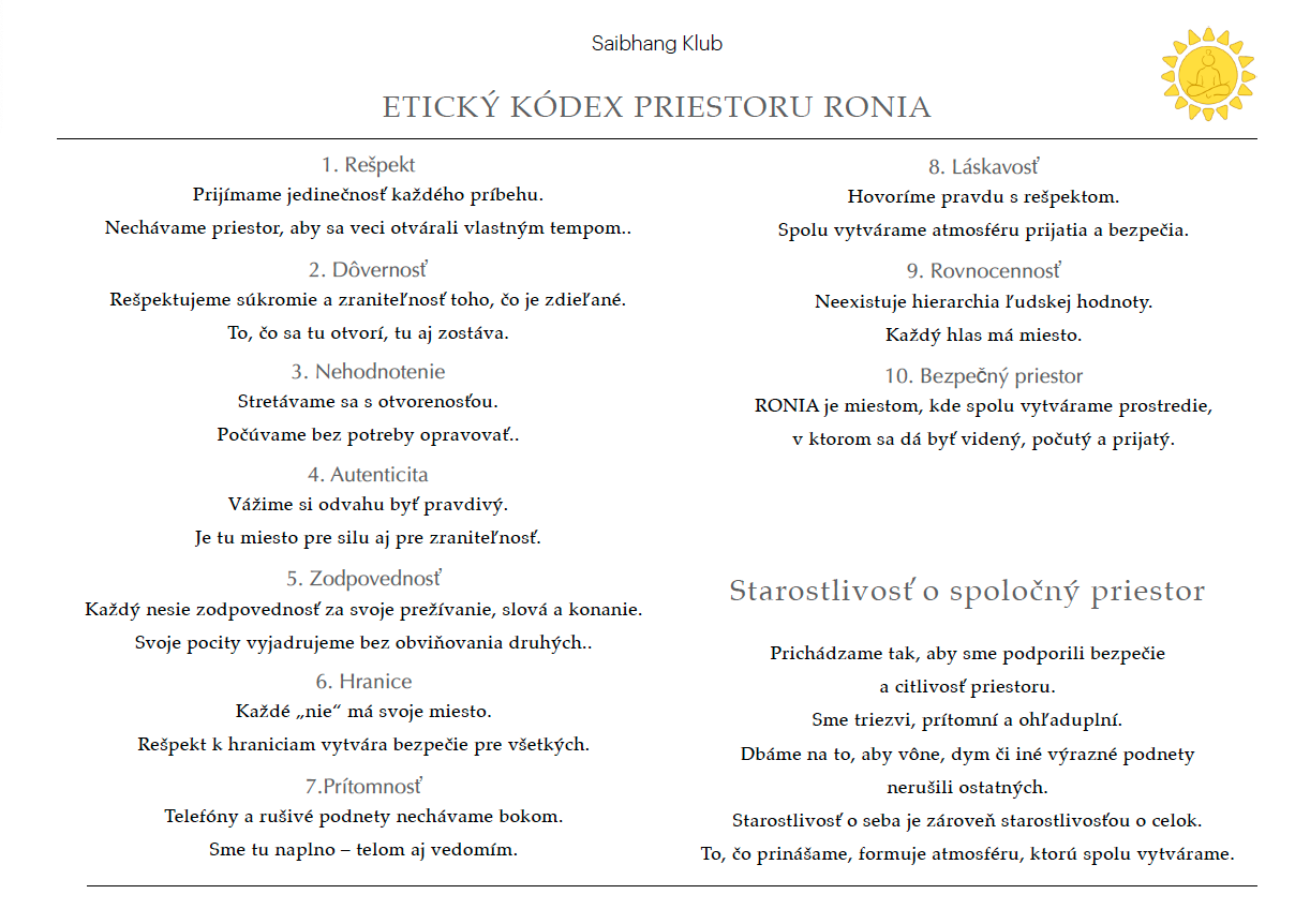 RONIA je miestom, kde spolu vytvárame prostredie, v ktorom sa dá byť videný, počutý a prijatý.
