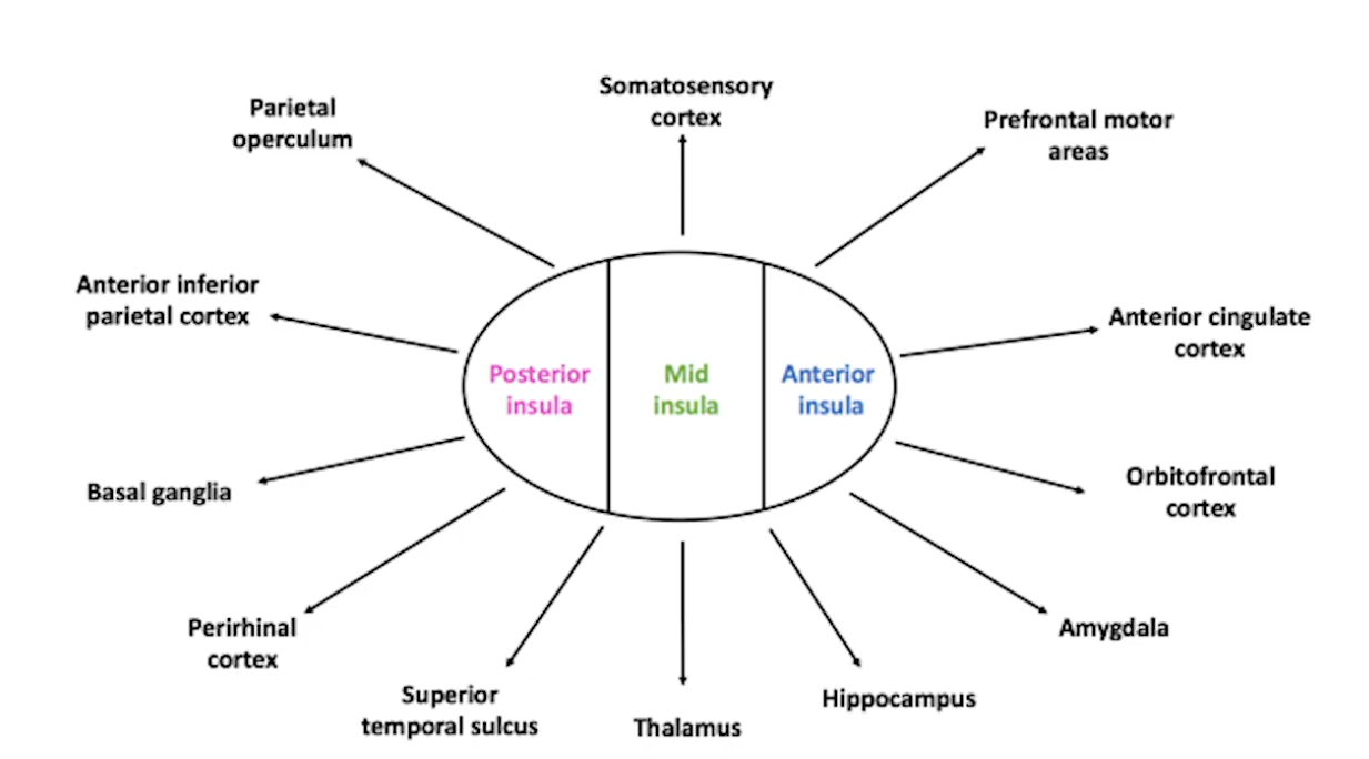 Insula patrí medzi najviac prepojené oblasti mozgu. Neuroveda dnes nepracuje s jedným pevným číslom typu „presne 24 spojení“, ale výskumy ukazujú, že insula má priame funkčné prepojenia približne s 20 až 30 hlavnými mozgovými oblasťami.